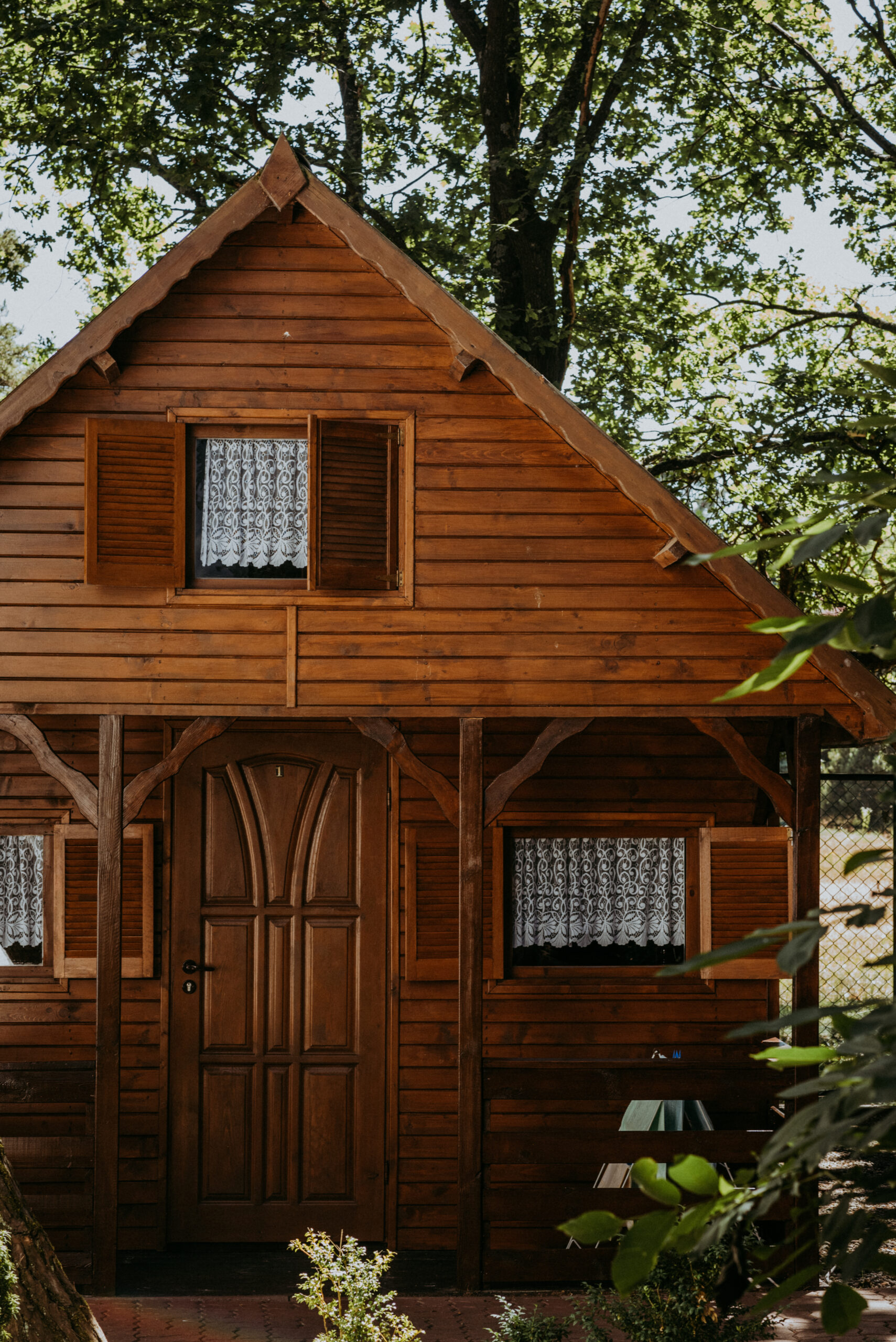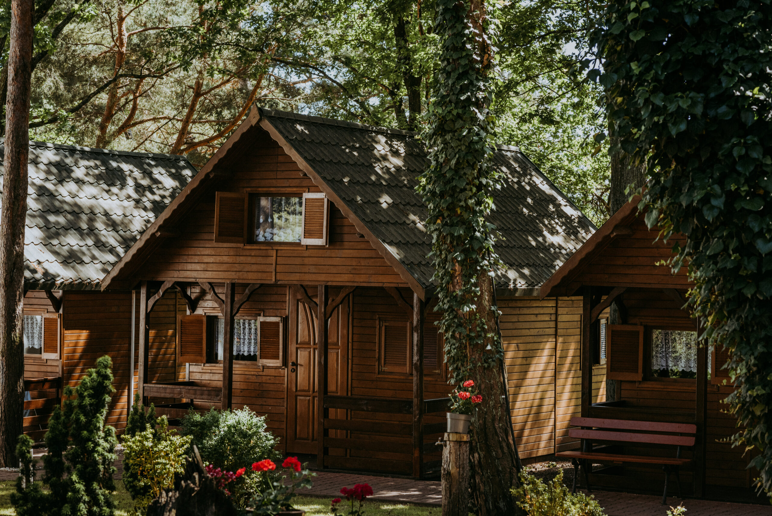 Wybierz jeden z 11 naszych drewnianych domków letniskowych. W każdym jest miejsce dla czterech osób. Wszystkie nasze domki wypoczynkowe są , przytulne i mają przyjemną werandę. Dookoła domków rosną wysokie drzewa, dające cień i ochłodę w gorące letnie dni.